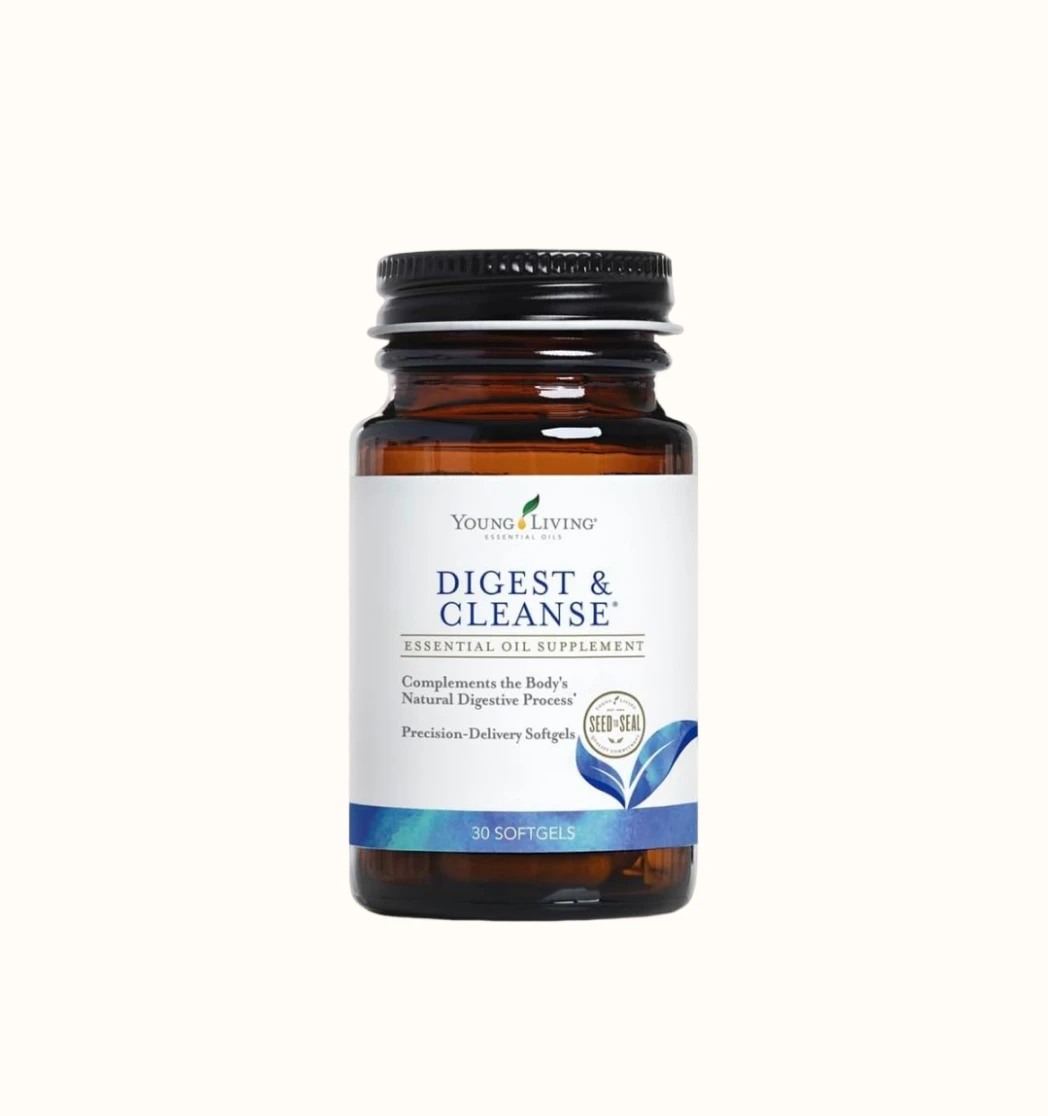 Young Living’s Digest & Cleanse is a dietary supplement formulated to support the digestive system and promote overall wellness. It contains a blend of essential oils known for their digestive benefits, including peppermint, caraway, lemon, ginger, fennel, and anise. These oils are encapsulated in a liquid softgel form for easy ingestion.